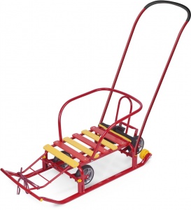 Нажав на педаль, вы опустите колеса и сможете катить санки по гладкому асфальту или полу (например, в магазине или в подъезде).